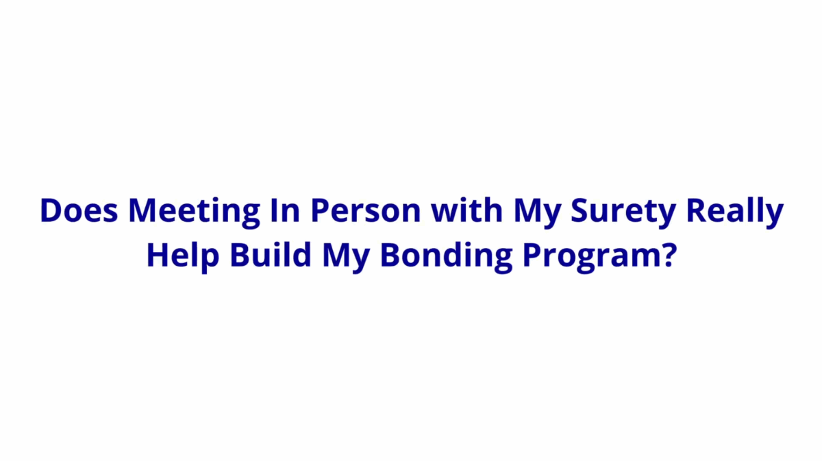 In this episode of Ask The Surety Pro, Chris Smith, Senior Surety Broker, answers a question from a Division 08 subcontractor: “Does meeting face-to-face with my bonding company really help increase my bonding program?” Watch time: 1:23 minutes Watch now to learn why personal connections with your surety company can lead to better bonding program…
